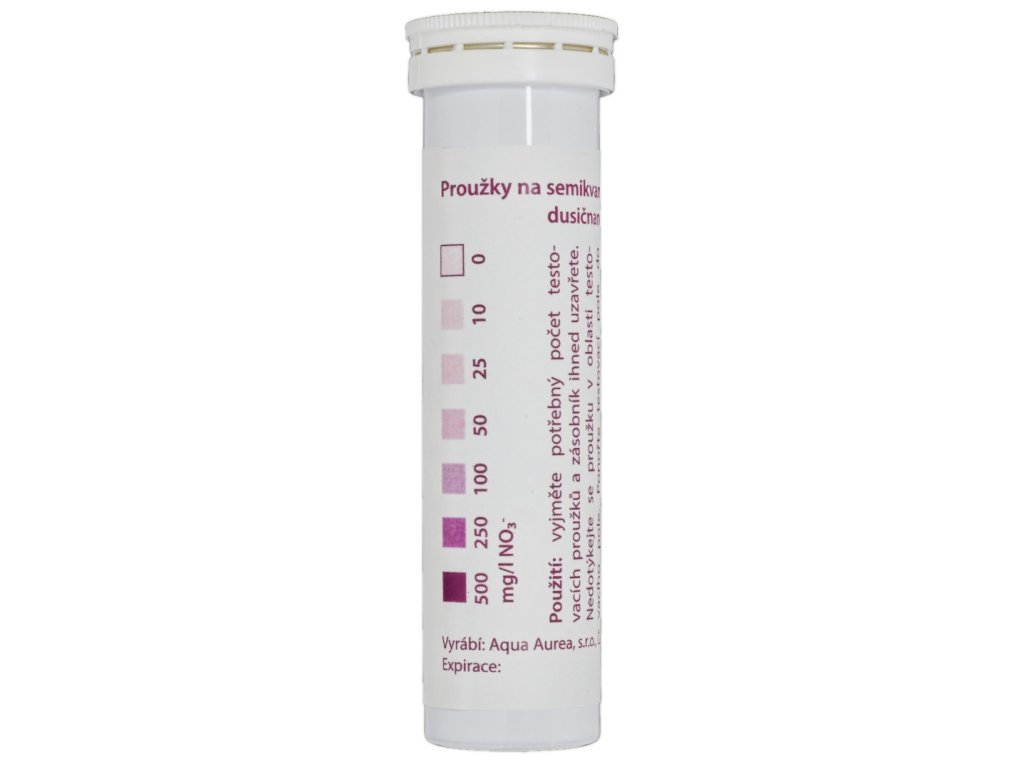Levné a rychlé řešení, jak zjistit obsah dusičnanů ve vaší vodě. Jedná se o testovací proužky, které barvu dle koncentrace dusičnanů ve vodě.